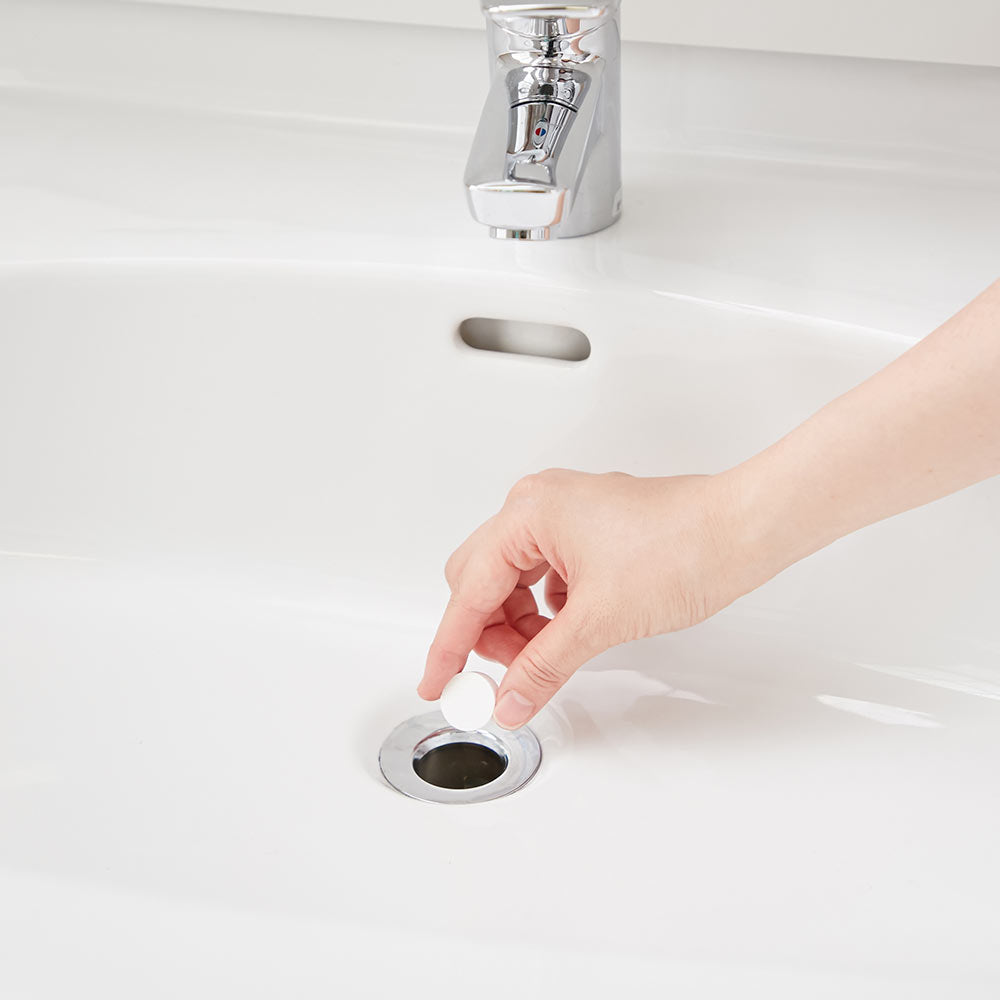 台所、浴室、洗面所などの排水口に1~3錠投入します。