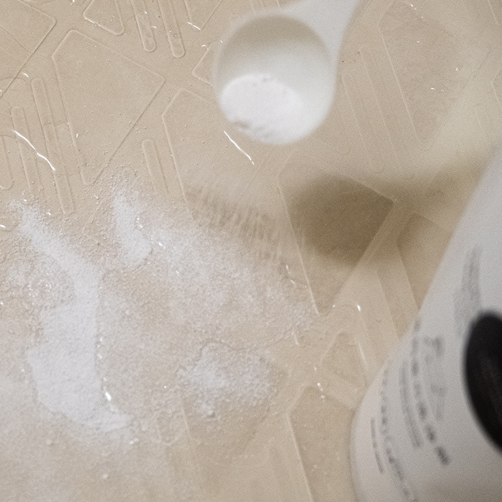 この排水管洗浄剤は、排水口のさらに奥にある排水管内の汚れを取り除いてくれます。合成界面活性剤を使っていないことでイヤな臭いもしないから、いつでもお好きな時にお使いいただけます。