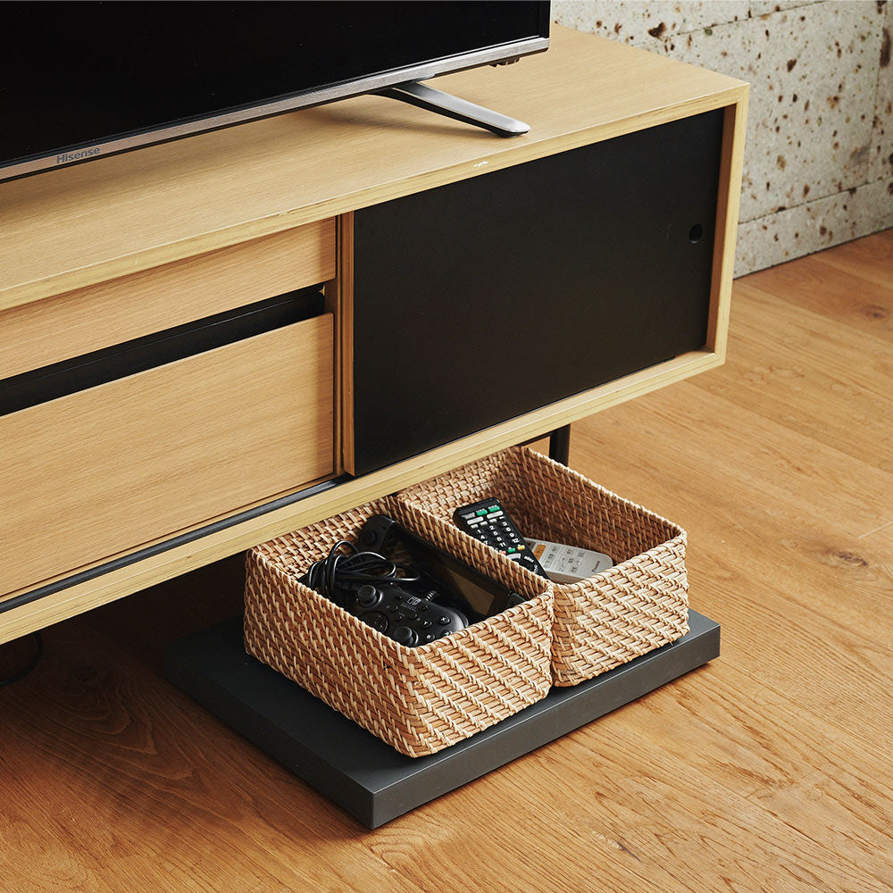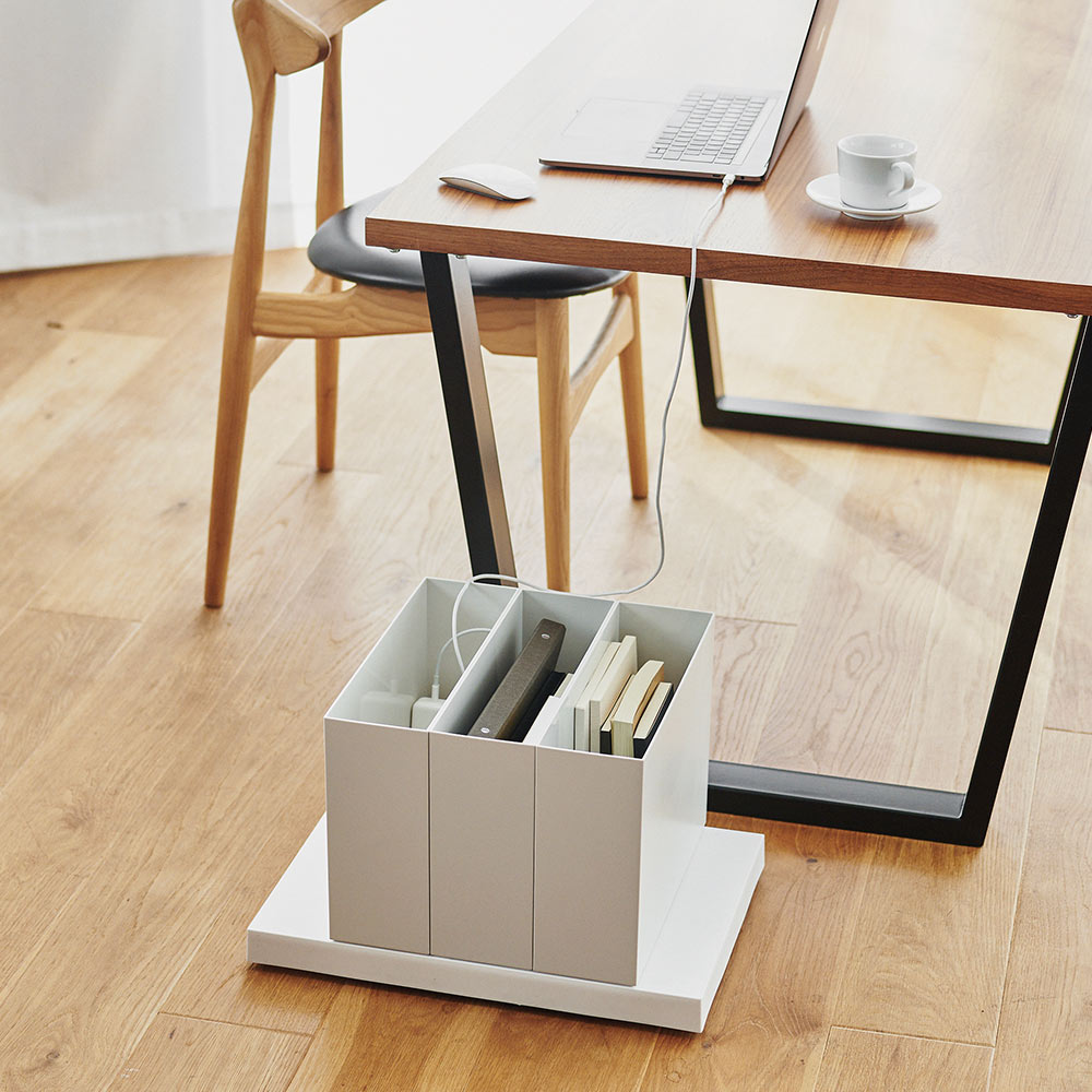 サイズは、A4ファイルボックスがぴったり載る設計。リモートワークで使う機材や書類、プリンターなどもこの台にまとめれば、部屋間の移動もスムーズです。