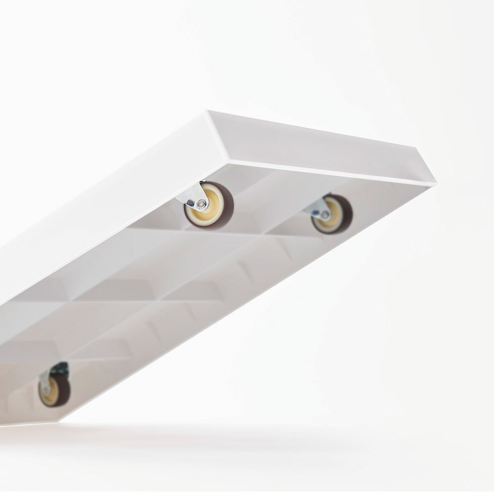 暮らしの中で“見た目を崩さずに使えること”は、意外と大切。この「動く台」は、そんな美しさと機能のバランスを大切にデザインされています。キャスターが見えにくい設計で、部屋の角にもすっきり収まり、空間の印象を損ないません。