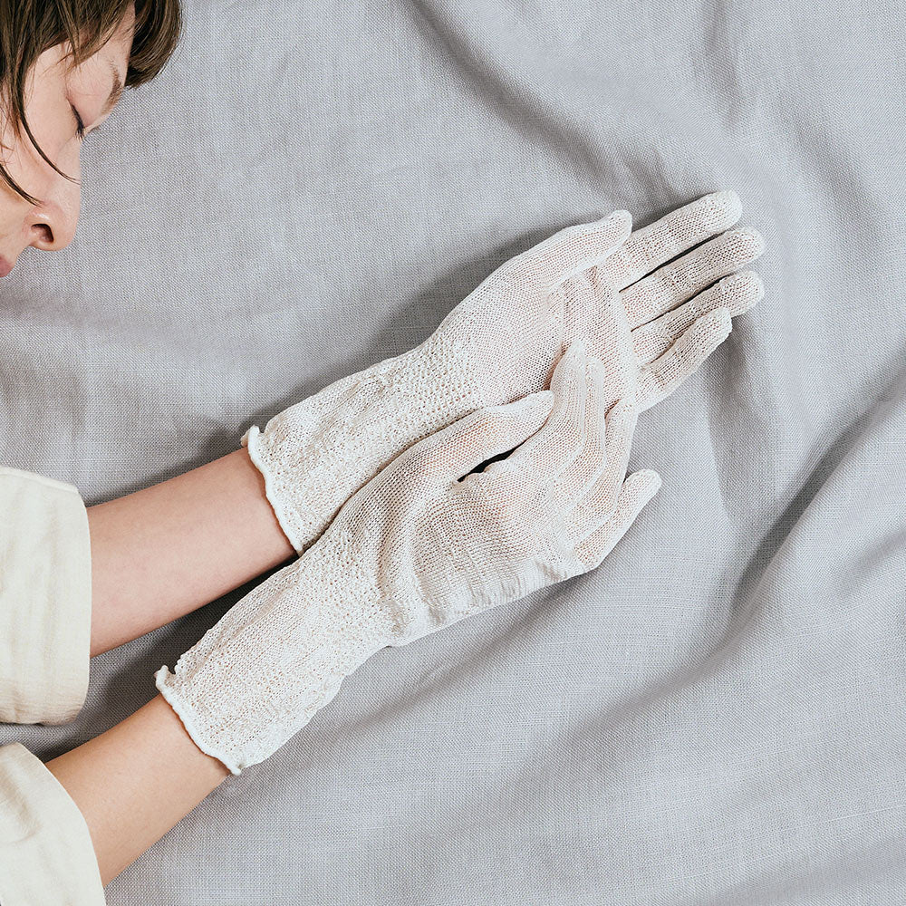 乾燥しやすい手肌を、眠っている間にそっと包み込むハンドケア用グローブ。