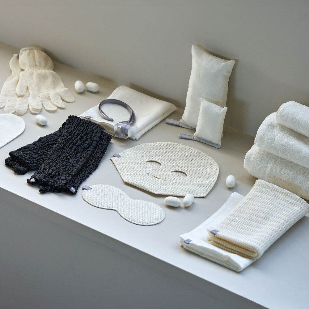 薬剤を使用しない製法で作り上げた、絹ならではの肌馴染みの良さと天然の抗菌力。日々のケアに、安心安全にお使いいただけます。