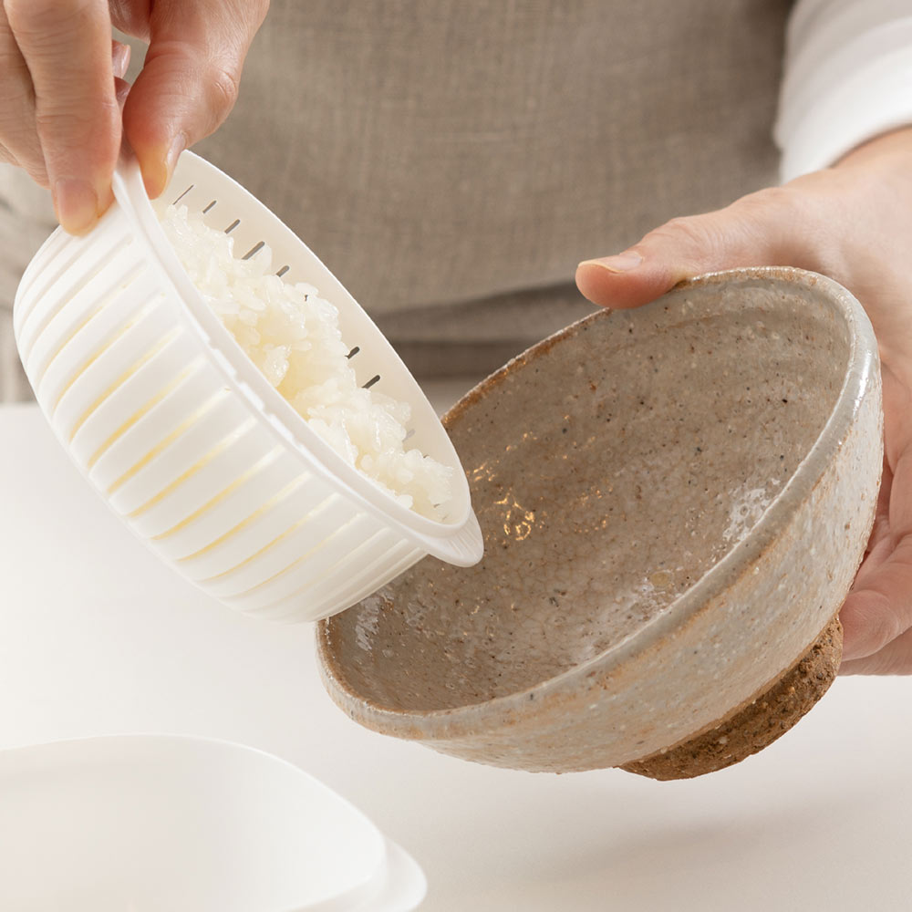 余分な水分は下に落ちてベタつきを抑え、ムラなく均一に温まることで、冷凍ごはんでも炊きたてのようなふっくらとした仕上がりに。
