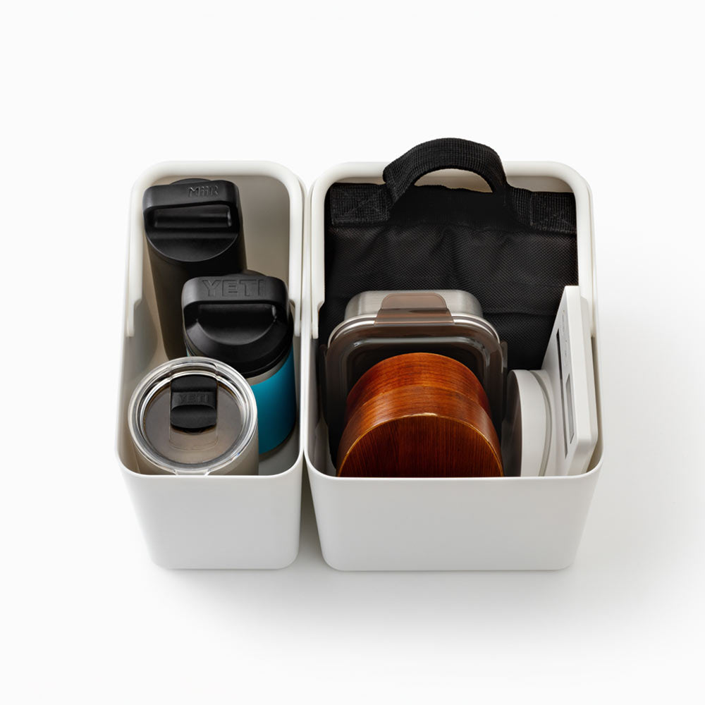 本体と大小のインナーのセット。白米と雑穀米、シリアルとオートミールなど2種類の主食を一緒に収納できます。