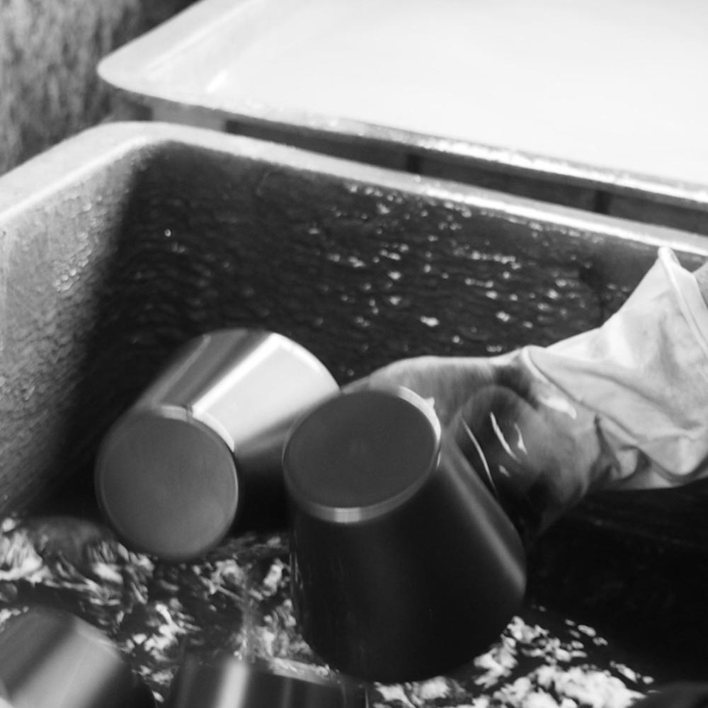 ・ご使用後は、できるだけ早く食器用洗剤や中性洗剤を柔らかいスポンジにつけ、やさしく洗い、自然乾燥ではなく、柔らかい布で水気をよく拭き取り、よく乾燥させてから保管してください。