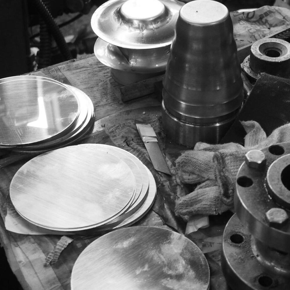 製作は、円形の銅板をゆっくりと引き伸ばし成形するところから始まります。何度も削り、細部を整え、ていねいに磨き上げる工程を経て、ようやく現在の姿へ。