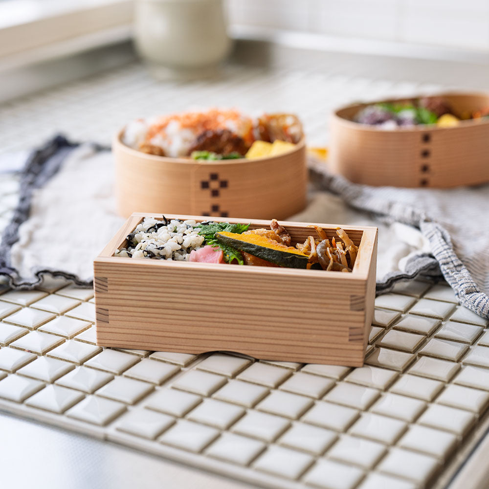 - 接着剤を一切使用していない鳥取杉のお弁当箱