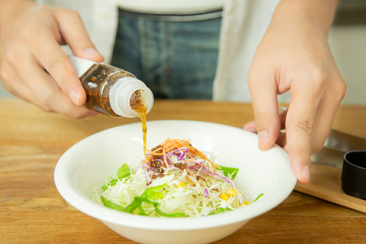 いつも振ってすぐにかけるので気にしていませんでしたが、原材料を見てみると、油や添加物もたくさん。かと言ってサラダを食べる度に手づくりドレッシングを作るのも手間で……。