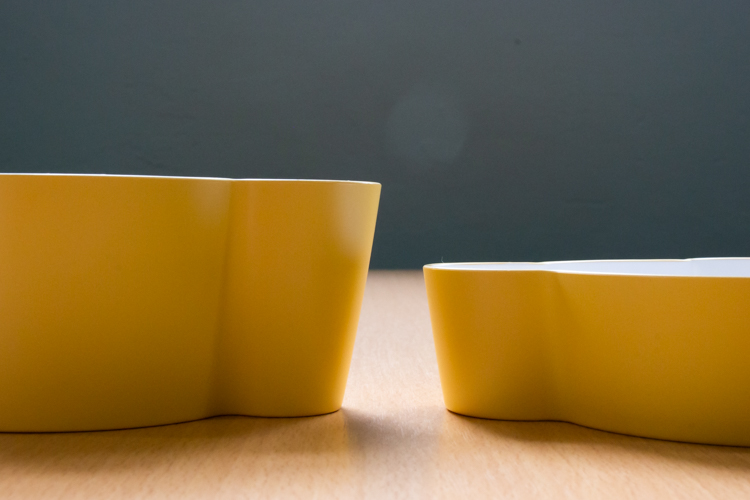 ボウルのサイズは直径13.8cmで同じなのですが、SとMで深さが異なります。ボウルSの深さは3.5cm、ボウルMの深さは5.5cmです。