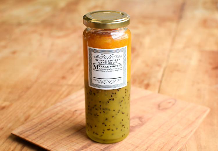 オレンジとキウイフルーツの果肉が詰まった2層のジャムは、見た目も色鮮やかで贈り物としてもオススメです。